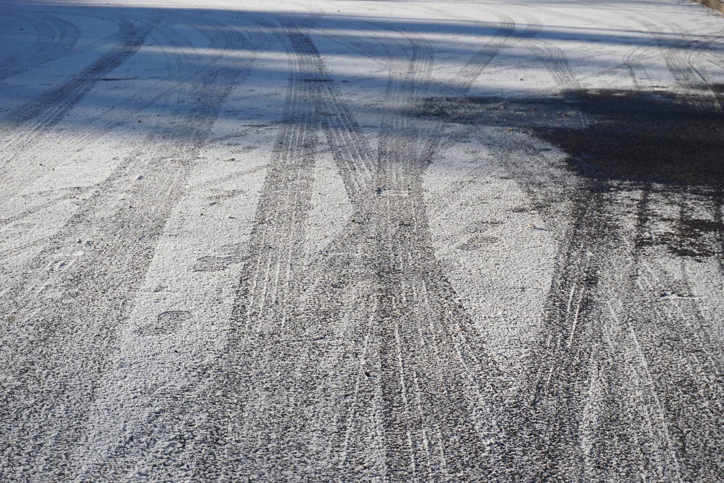 Back on that icy, cold and silly morning, I snapped back out of my thoughts. I was also, it seems, horizontal. Underneath me was the single sheet of ice, and sandwiching me from above was my bike (mercifully unharmed). My aching left hip - which, I’m sure, is 80% scar tissue from years of being a goalkeeper - was being rendered numb by the cold and dull impact of striking the ground as I slid dramatically off my bike.